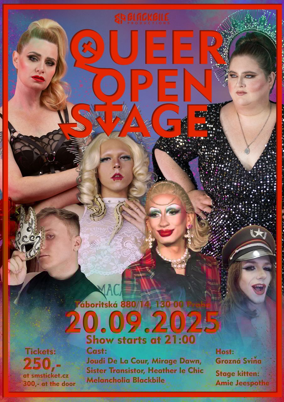 Drag queens, drag kings, burleska, vzdušná akrobacie, tanec i živý zpěv a další – každá naše Open Stage je jiná. Pokaždé se ale můžete těšit na nezapomenutelný večer a nesrovnatelně přátelskou atmosféru!