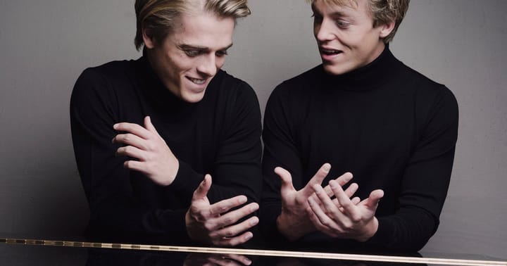 Nizozemští bratři Lucas a Arthur Jussenovi jsou považováni za nejlepší klavírní duo současnosti. Vystupují spolu již téměř dvacet let, což ovšem vzhledem k jejich věku znamená opravdu od dětství. Hrávají jak na čtyři ruce na jednom klavíru, tak i na dva klavíry a v obou alternativách vzbuzují ohromující dojem, úžas a nadšení. Jestliže bývá do určité míry pochopitelným problémem téměř každého klavírního dua ne vždy zcela přesná synchronizace úderů, u této dvojice jako by taková možnost ani neexistovala. Své umění prokáží publiku v Rudolfinu v Koncertu pro dva klavíry Francise Poulenca, v neoklasickém, až téměř mozartovském díle z roku 1932, nabízejícím okouzlující dialog dvou sólistů. Hudba zlínského rodáka Jiřího Kadeřábka, našeho současníka, je podle anglosaských médií řemeslně zvládnutá a neodolatelná svým hravým škádlením, působivá, seriózní i zábavná, téměř vždy odhalující nějaký zlomyslný zvrat. Koncert je součástí koncertní řady R.