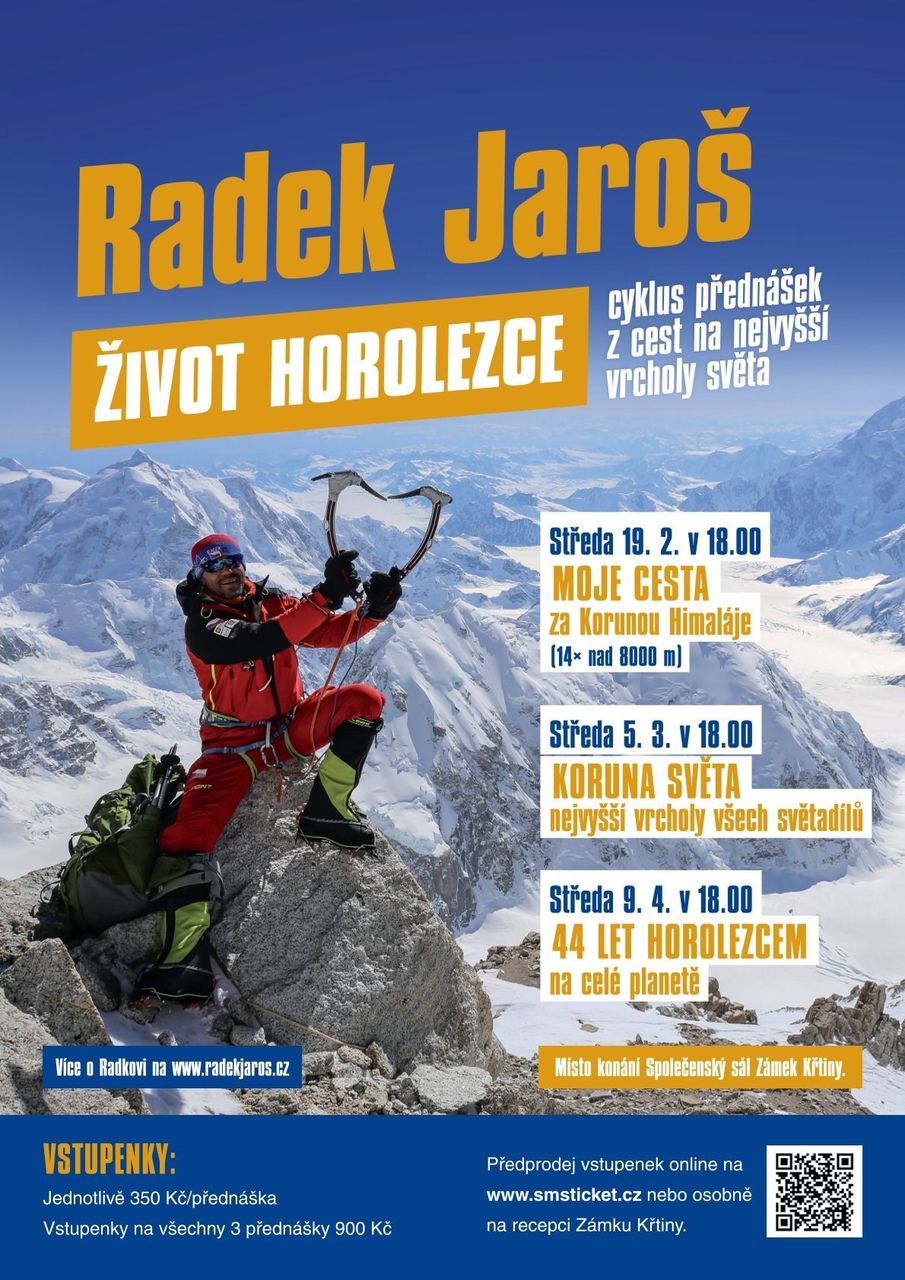 Přednášky Radka Jaroše vycházejí z jeho více jak 20 let trvající kariéry profesionálního horolezce. Zážitků a zkušeností nasbíraných v průběhu nespočtu himálajských expedic, jejichž cílem bylo postupně stanout na všech čtrnácti nejvyšších vrcholech světa. Díky Radkově pohledu na svět a jemu přirozené otevřenosti nabízejí Radkovy přednášky nevšední příležitost nahlédnout do zákulisí velkých expedic, klukovských snů a splněných přání.