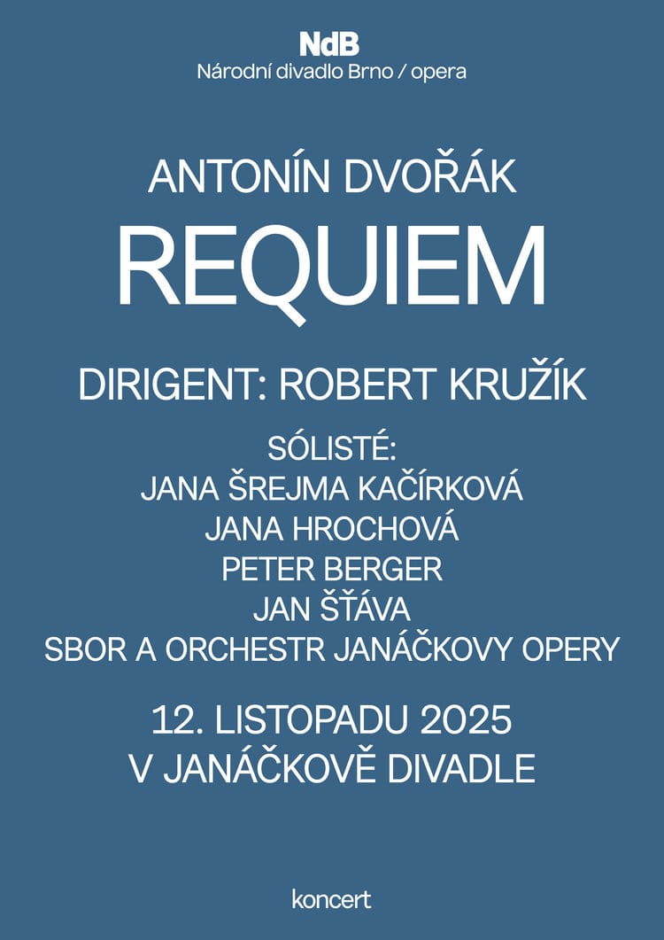 Podzimní koncert je v duchu krásné tradice našeho operního souboru, kterou je uvádění velkých vokálně instrumentálních děl, kde se skvělý sbor a orchestr Janáčkovy opery NdB může představit mimo svůj klasický operní repertoár. Tentokrát se tak stane pod taktovkou nového šéfdirigenta Roberta Kružíka a večer bude patřit jednomu z výjimečných děl Antonína Dvořáka.
