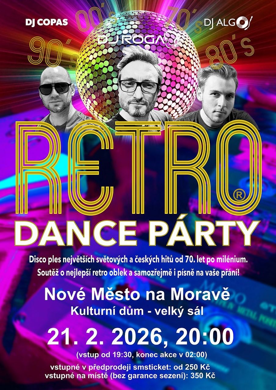 RETRO DANCE PÁRTY je šestihodinový disco ples těch největších hitů od sedmdesátých let až po milénium. Zkrátka od Abby přes Modern Talking až po Rihannu.