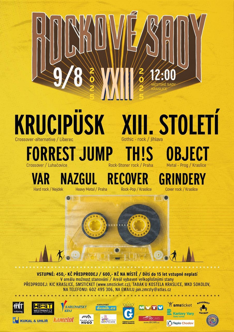 23 ročník festivalu Rockové sady je pořádán nepřrtžitě od roku 2003.Festival se koná v krásném přírodním prostředí v Městských sadech Kraslice.Areál bude vybaven velkoplošnými stany.V areálu je možnost stanování