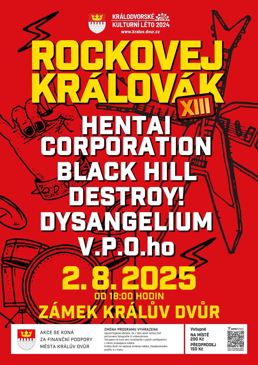 Na letní scéně zámku v Králově Dvoře se v sobotu 2. srpna 2025 uskuteční další ročník rockového festivalu Rockovej Královák. Letošní, už třináctý ročník, přinese pořádný nářez rockové muziky. Stejně jako v uplynulých letech na něm vystoupí kapela Black Hill a Destroy!  Dále se představí kapely Hentai Corporation, Dysangelium a V.P.O.ho.