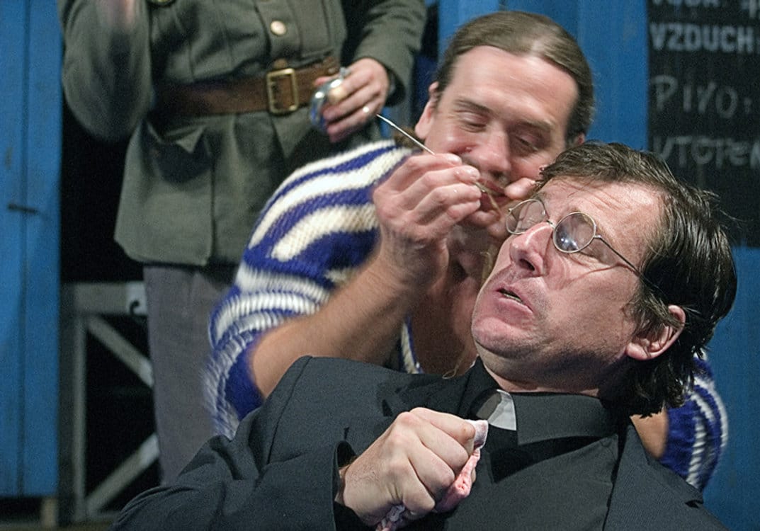Na staré říční plovárně malého městečka Krokovy Vary se pravidelně sházejí tři přátelé – Major ve výslužbe Hugo, sečtělí abbé Roch a majitel těchto říčních lázní Antonín Důra. Společně zabředají diskuze na všelijaká témata a navzájem se špičkují. Jedno deštivé letní odpoledne jejich poklidné klábosení přeruší příjezd potulného komedianta a kouzelníka Arnošta a jeho krásné společnice Anny. Ten pak rozhýbe celou řadu události, které změny životy všech tří přátel. Nechte se vtáhnout do světa známého spisovatele Vladislava Vančury v Divadle v Celetné.