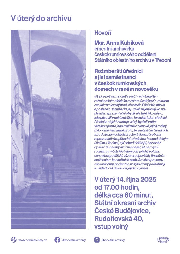 Přednáška emeritní archivářky Mgr. Anny Kubíkové v rámci dlouhodobého přednáškového cyklu „V úterý do archivu.“