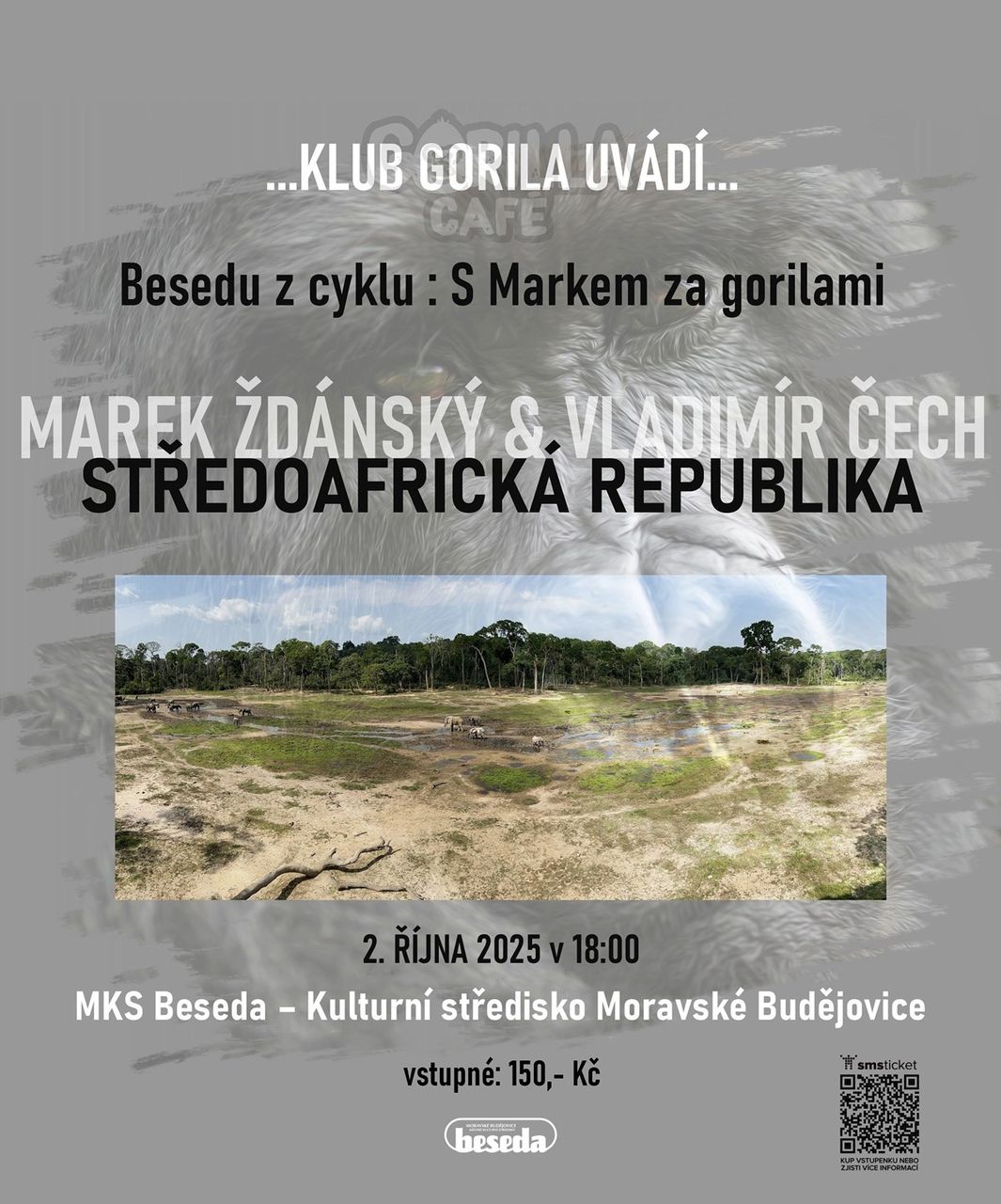 Marek Ždánský se s námi podělí o své zážitky při setkávání s těmito krásnými zvířaty, přijede s ním i fotograf Vladimír Čech. Vladimír Čech gorily nejen fotografuje, ale snaží se jim spolu s Markem i pomáhat. Oba se stali ambasadory parku Kahuzi Biega v Kongu, společně založili neziskovou organizaci a snaží se získat peníze na podporu strážců, stopařů či lékařů, kteří gorilám pomáhají.