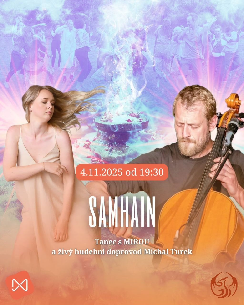 - 20:10 – 21:30 – samhainový tanec DJ MIRA a živý hudební doprovod Michal Turek (kytara, flétny, violoncello, bicí nástroje a didgeridoo)