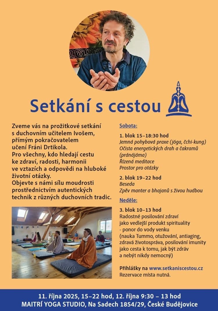 Společenství „Setkání s Cestou“ vás zve na prožitkové setkání se zkušeným duchovním učitelem Ivošem, přímým pokračovatelem učení Fráni Drtikola.
