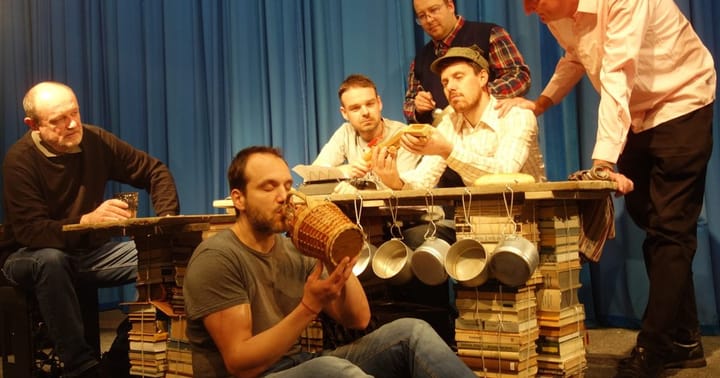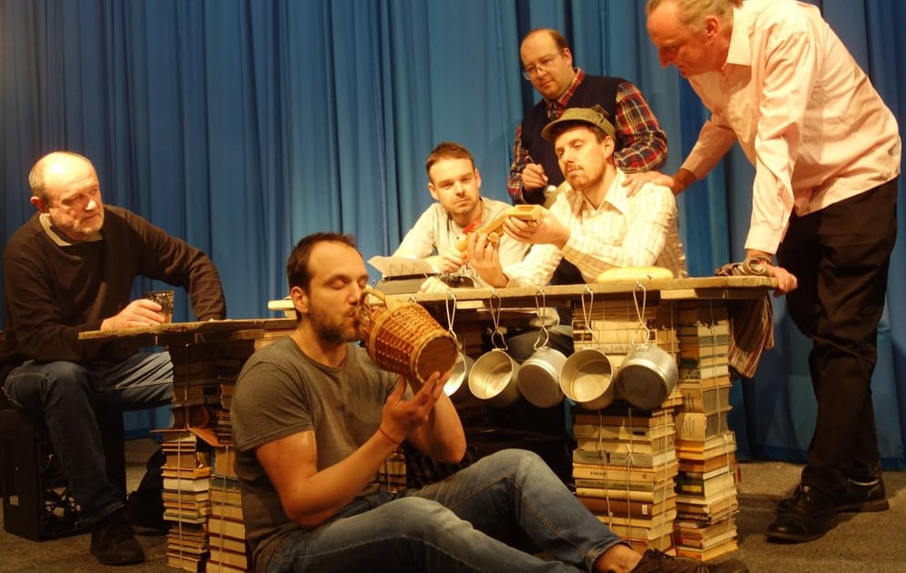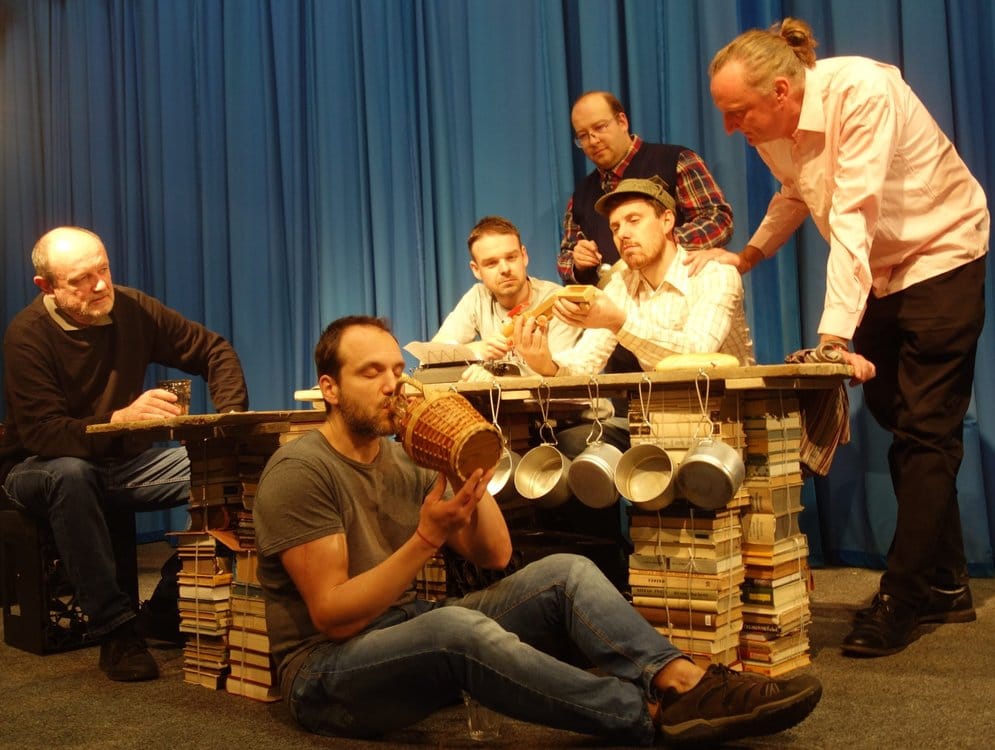 Komediálně dramatická amoleta o jednom (posledním) dějství. Sextet partyzánů v zemljance v pražské Stromovce. Příprava zásadního činu, hesla, hlídky, konspirace, amádová furniklovice na rušně – a slova, slova, slova. „Vážení, já bych si taky radši vařil nebo si psal nebo si chodil pozdě, ale když budem vařit, psát a chodit pozdě všichni, tak ten vlak nevyhodíme nikdy!“. Představení vzniklo společnými silami divadelních souborů: Ochotnický spolek ŽUMPA, Divadlo Máj Praha, Divadelní soubor Ragueneau a Divadelní soubor Hraničář Rumburk
