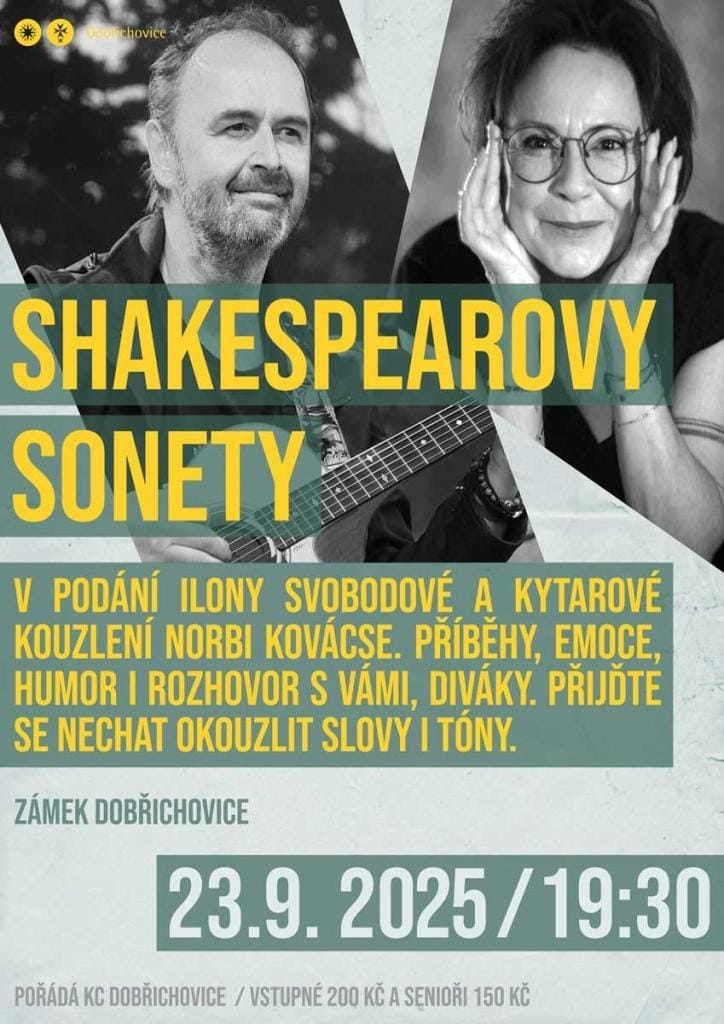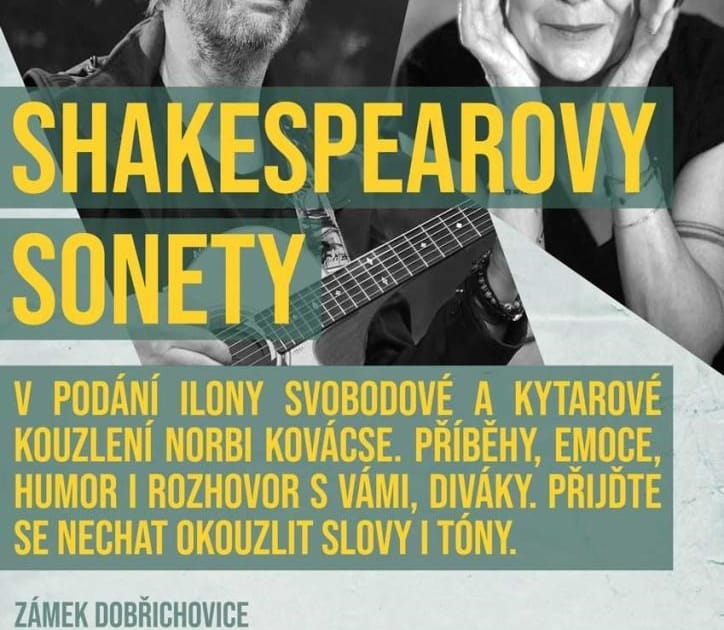 Shakespearovy sonety s kytarovým doporovodem. Přednes Ilona Svobodová, kytara Norbi Kovács; příběhy, emoce, humor i povídání s diváky.