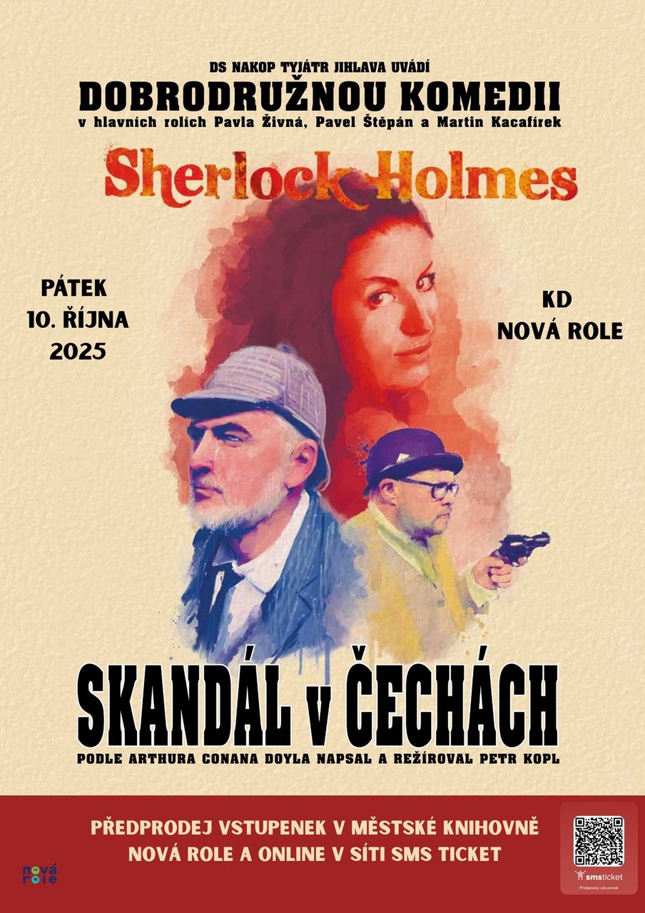 Divadelní představení na motivy povídek sira Arthura Conana Doyla, autora krále všech detektivů Sherlocka Holmese, podle první povídky, kde geniální detektiv poprvé spatřil světlo světa na stránkách Strand Magazine. Podaří se Sherlocku Holmesovi vyřešit problém českého krále a zabránit tak hroznému skandálu? Představení secvičil divadelní soubor s 25letou tradicí NaKop Tyjátr Jihlava.