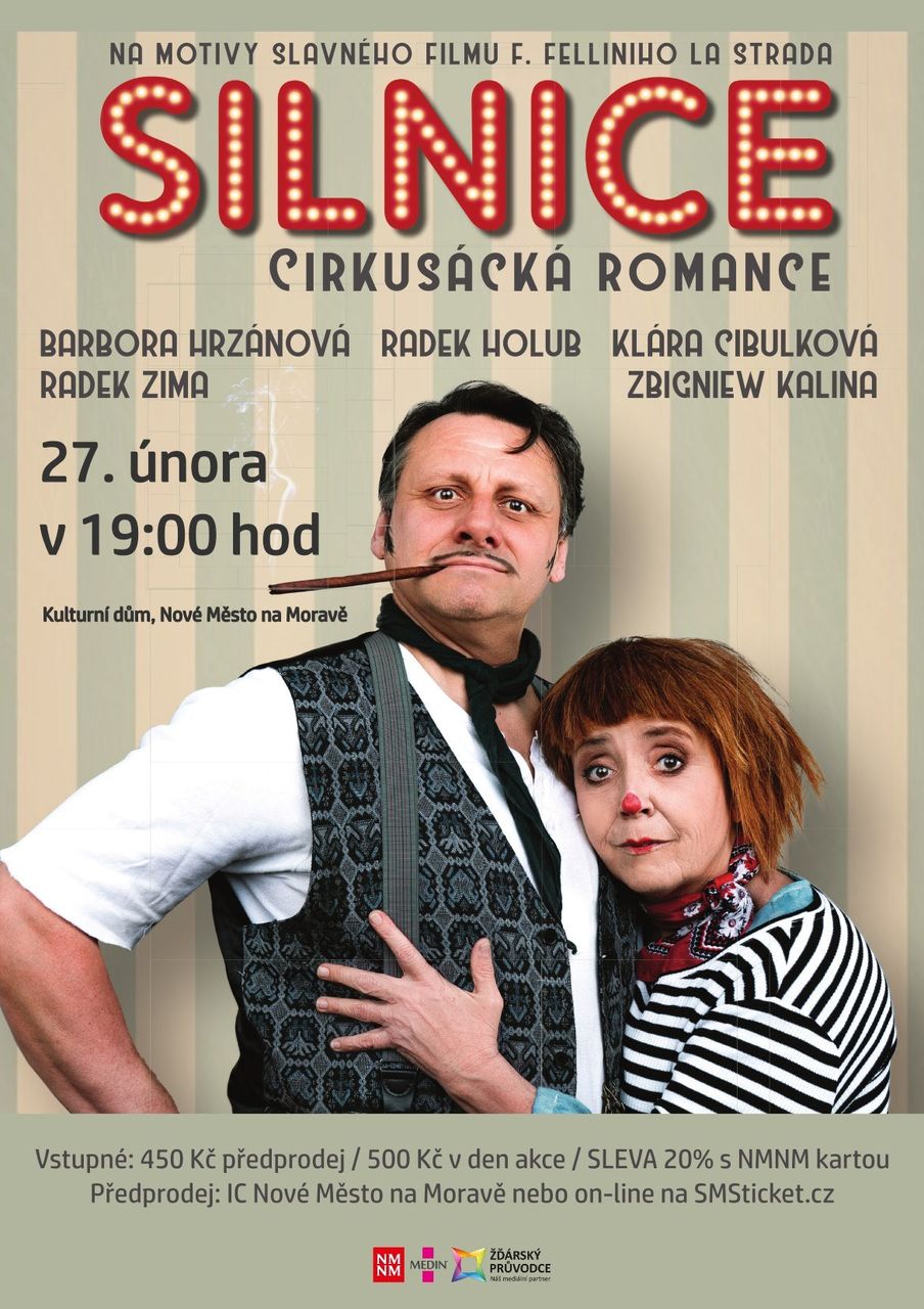 Strhující herecké výkony Barbory Hrzánové a Radka Holuba v hlavních rolích zdobí naši inscenaci Silnice, napsanou na motivy slavného oscarového filmu Federica Felliniho. Vyprávění o osobitém soužití dvou potulných komediantů Zampana a Gelsominy divákům nabízí řadu vtipných i napínavých momentů a hercům prostor například doprovodit se na hudební nástroje a předvést na jevišti celou řadu dalších nevšedních dovedností. Vedle Hrzánové s Holubem v dalších rolích excelují v režii Lídy Engelové Klára Cibulková, Zbigniew Kalina a Radek Zima.