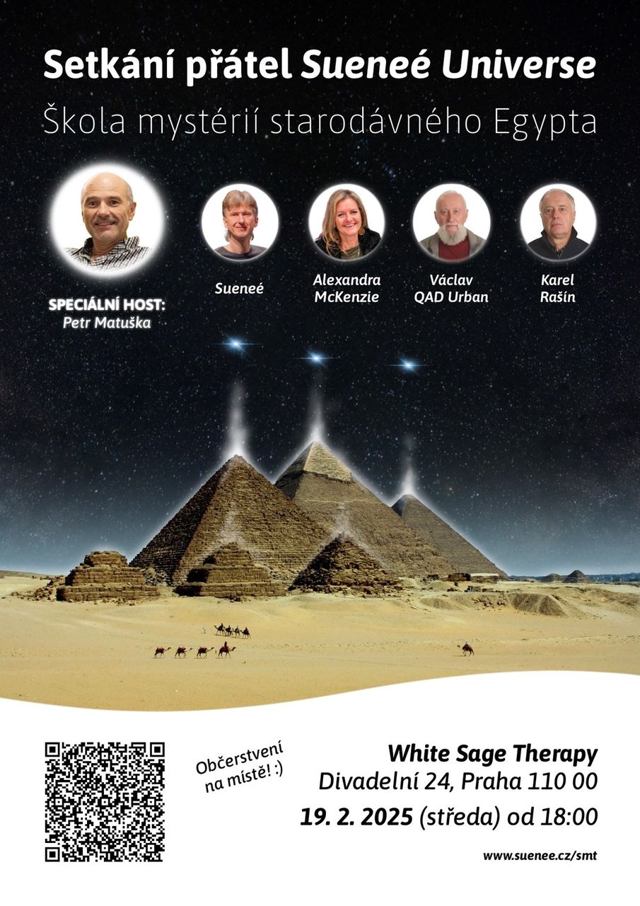 Zveme vás na setkání přátel a fanoušků zpravodajského serveru Sueneé Universe, které pořádáme pravidelně ve White Sage Therapy! Pojďme společně tvořit nový vesmír, setkat se u dobrého jídla v přátelské neformální atmosféře, sdílet zážitky nejen ze setkání s ET. Téma: ŠKOLA MYSTERIÍ STARODÁVNÉHO EGYPTA.