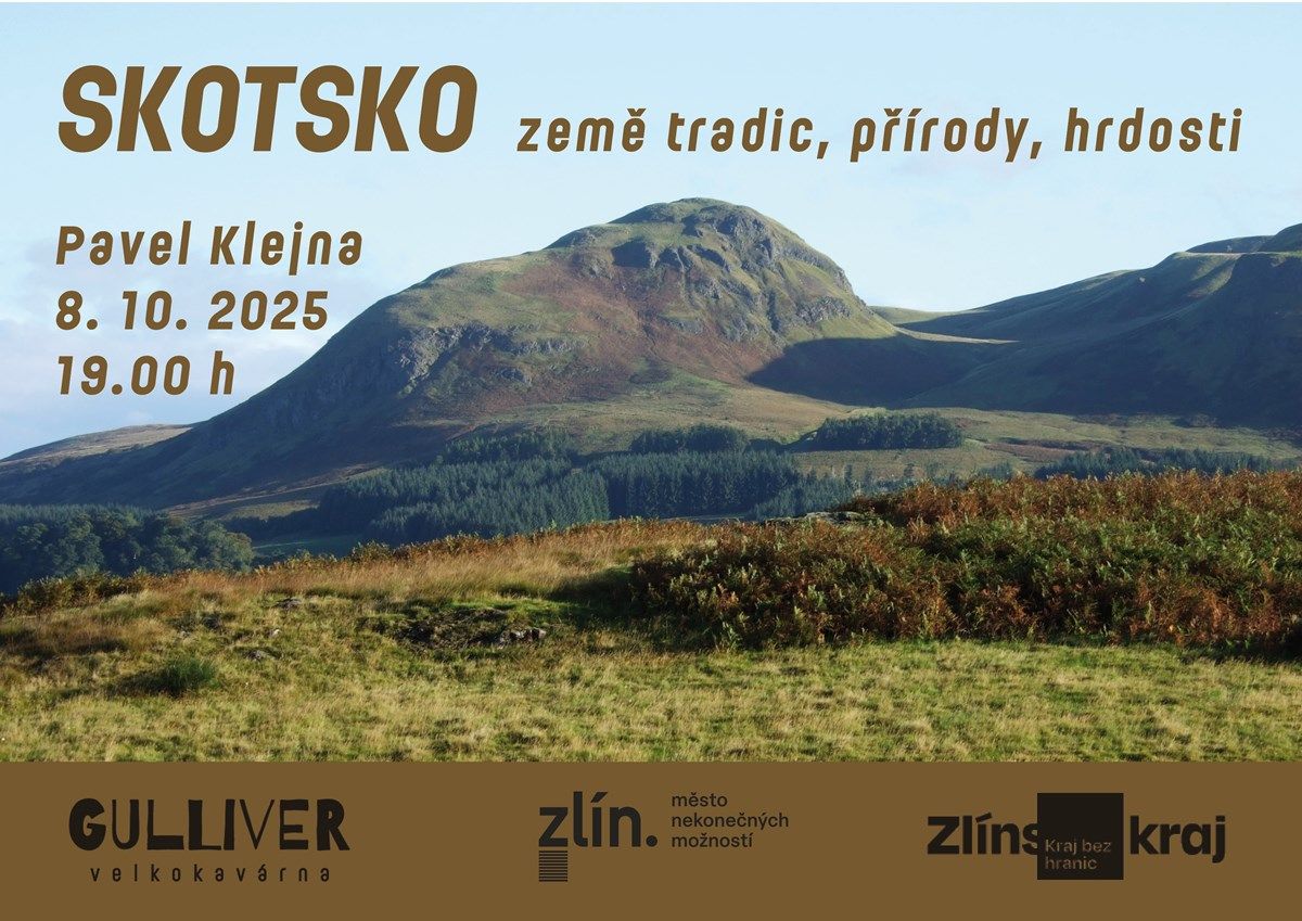 identitou. Drsná krajina, která patří spojenému království, ale geomorfologicky se řadí pod Skandinávii. Země opředená mnoha legendami a mýty, země rebelů i pohodových lidiček, země whisky a ginu, země dlouhosrstých krav a jezerních příšer. Nejen o tom, ale třeba i o tajemstvích druhé světové války na území Skotska, vám bude vyprávět horský vůdce a bývalý člen horské služby – Pavel Klejna.