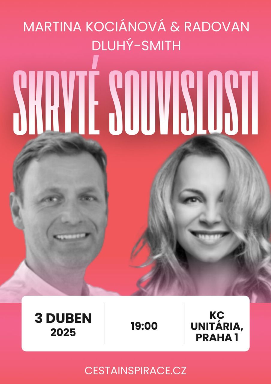 Připojte se k nám na fascinující besedu SKRYTÉ SOUVISLOSTI s hosty Martinou Kociánovou a Radovanem Dluhým-Smithem!
