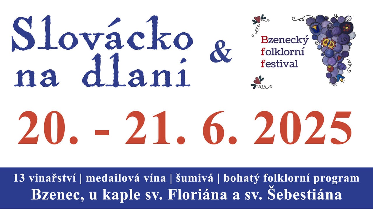 A to vše přímo u jedné z nejstarších viničních tratí v Česku – Pod Starým hradem. A taky dny plné folkloru, více než 200 účinkujících, mnoho cimbálových muzik, nepočítaně moravských písniček, beseda u cimbálu a malebné prostředí přírodního amfiteátru a přilehlé louky u kaple sv. Floriána a sv. Šebestiána.