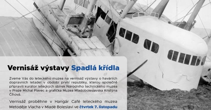 Shrnutí toho nejzajímavějšího i tragické letecké nehody najdete na výstavěSpadlá křídla, kterou otevřemeve čtvrtek 7. 11. Vernisáž začíná v 17 hodin.
