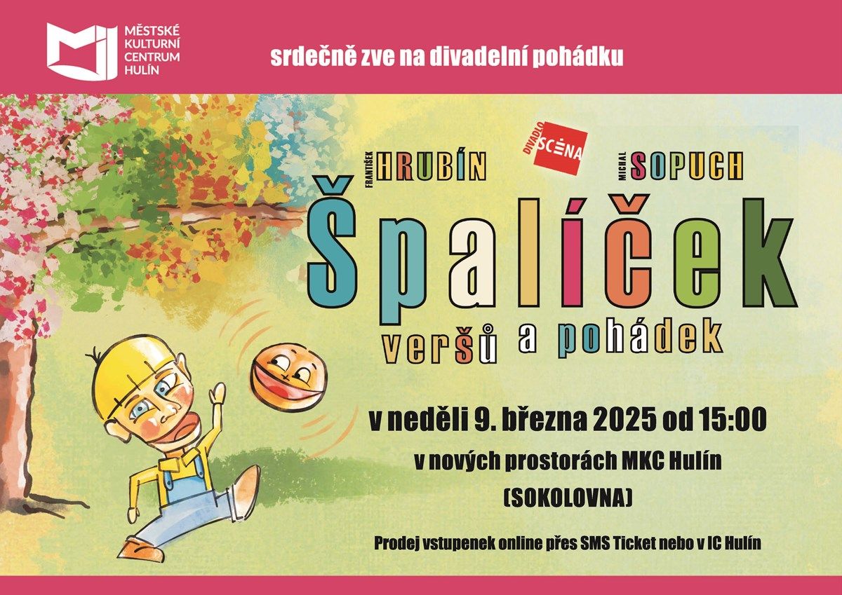 MKC Hulín srdečně zve děti a jejich rodiče na divadelní představení Špalíček veršů a pohádek, které se uskuteční v neděli 9. března 2025 od 15:00 ještě v původních prostorách MKC Třebízského 194 Hulín!