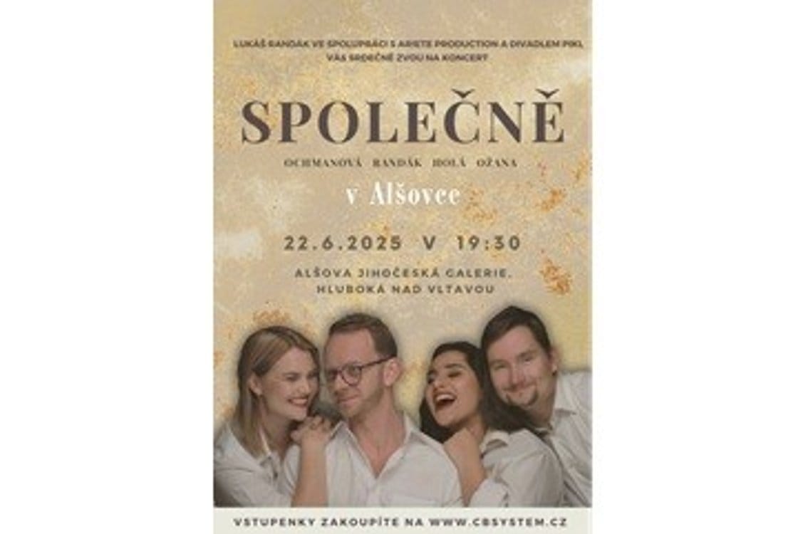 Vokální trio Společně se po několika letech vrací do prostor galerie, aby zde opět představilo program složený z českých a světových hitů upravených do nových podob, to vše pod vedením klavíristy Petra Ožany. Hlasy Andrey Holé, Elis Ochmanové a Lukáše Randáka doplní smyčcové kvarteto, a tak diváci pět zažijí jedinečnou atmosféru při společném hudebním zážitku.