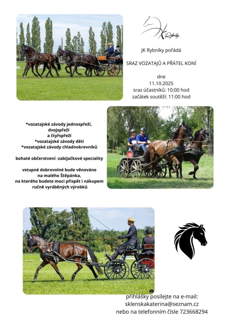 Pro všechny, kteří jsou milovníky koní a vozatajství, je tu další ročník jejich společného setkání, a to v Rybníkách. V rámci hlavního programu proběhne několik závodů a zajištěno bude také občerstvení včetně zabijačkových specialit. Akce začíná od 10 hod.