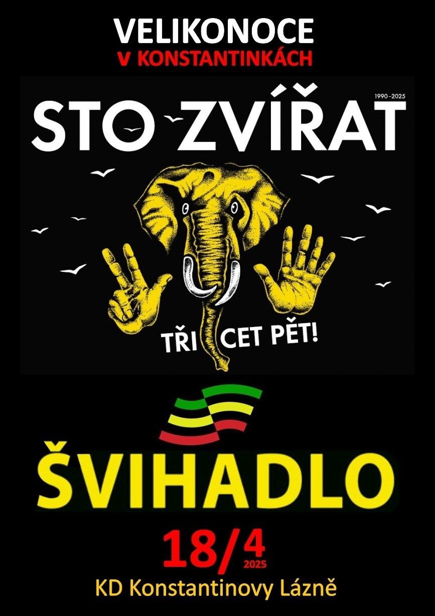 Připravte se na jízdu plnou rytmů a energie! Do Konstantinek přijíždí společná smršť spřátelených kapel Sto zvířat a Švihadlo, aby vám zpříjemnila start Velikonoc a naladili vás na pořádnou taneční vlnu!