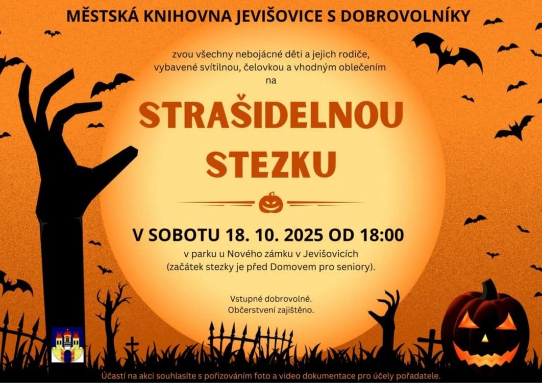 Na trochu strašidelnou dýňovou stezku se můžete po setmění s dětmi vypravit také do Jevišovic. Startuje se v 18 hod. v parku u Nového zámku- začátek stezky je před Domovem pro seniory. Během akce bude zajištěno také občerstvení.