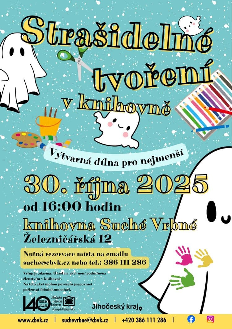 Kreativní dílna nabídne nejmenším dětem možnost vyrobit si vlastní kouzelné i trochu strašidelné výtvory. Nutná rezervace na suchevrbne@cbvk.cz.