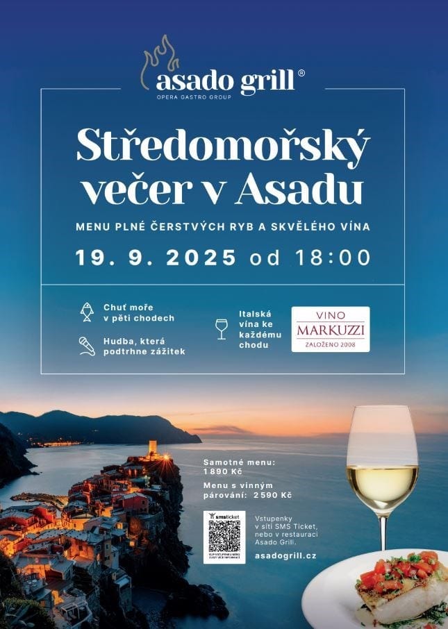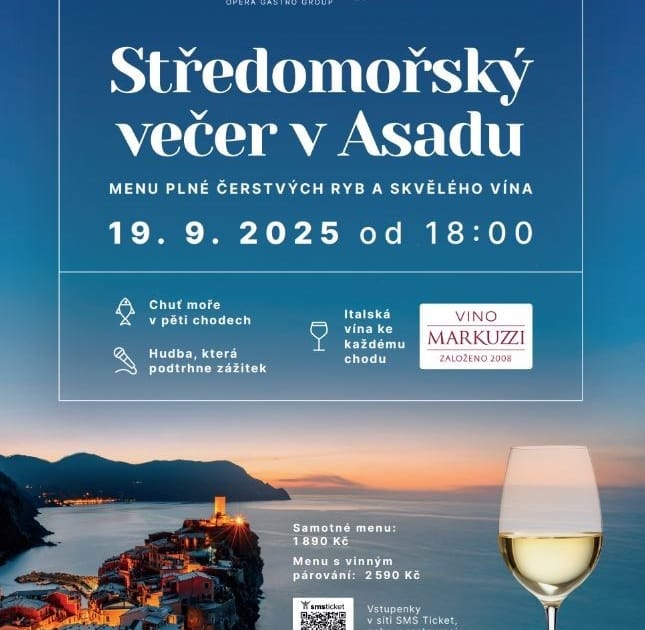 Přijďte si užít jedinečný degustační večer plný svěžesti, mořských chutí a kulinářské preciznosti do restaurace Asado Grill. Těšit se můžete také na párování s vybranými italskými víny od Vino Markuzzi. Pět chodů odlehčené rybí gastronomie – od tygřích krevet přes humra až po vlkouše – doplněných o výběrová vína z různých regionů Itálie. Degustace, která propojuje chuť moře s elegancí italského vinařství.