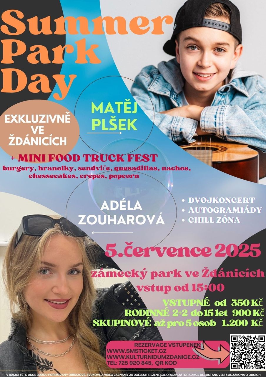Jedinečný dvojkoncert mladých talentovaných zpěváků Matěje Plška a Adély Zouharové. Čeká Vás skvělá show obohacená o autogramiády a prodeje merche obou umělců a mini food truck festival.