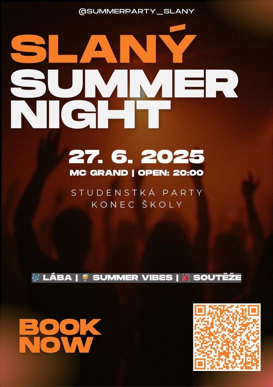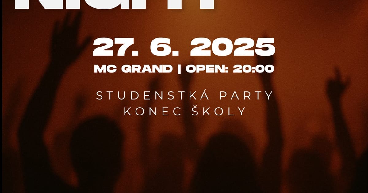 Zveme tě na nezapomenutelnou studentskou party plnou skvělé hudby, drinků a letní atmosféry přímo v centru Slaného! Akce proběhne 27. června, poslední den školy v městském centru Grand.