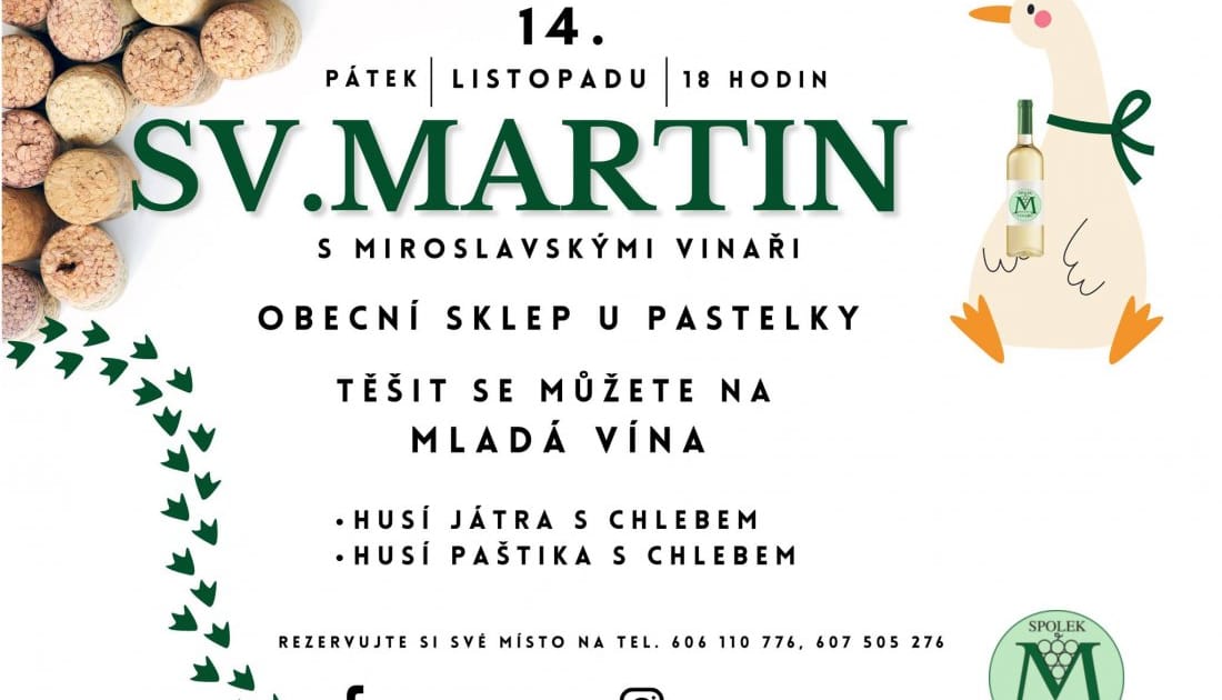 Spolek Miroslavských vinařů zve na sv. Martina do obecního sklepa U Pastelky (za mateřskou školkou) na ochutnávku mladých vín nového ročníku i dalších Svatomartinských dobrot k zakousnutí. Začátek v 18 hod.