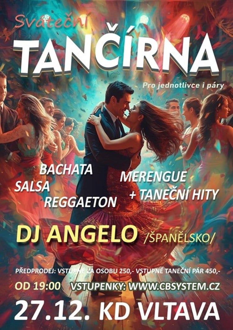 Dorazte si užít velký parket KD Vltava, kde budete mít dostatek prostoru na taneční kreace různých populárních tanečních rytmů, které Vám s přehledem naservíruje originální španělský DJ Angelo. Vstupné pro taneční páry za zvýhodněnou cenu.