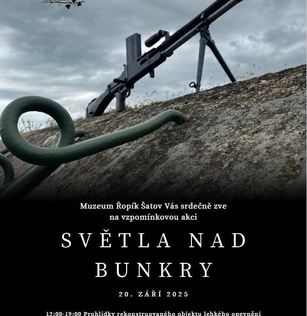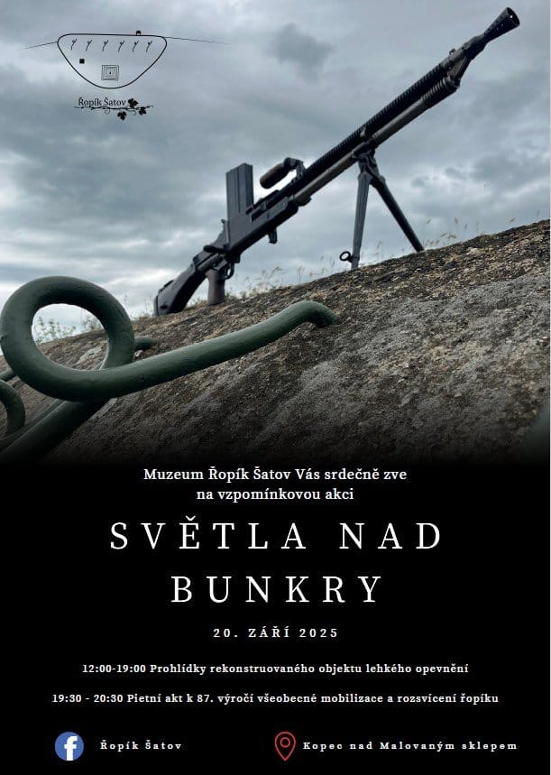 Celorepubliková akce Světla nad bunkry, která každoročně připomíná noc, kdy byla vyhlášena mobilizace, se účastní i Muzeum Řopík Šatov. Na prohlídky rekonstruovaného objektu lehkého opevnění, které budou veřejnosti v tento den otevřeny od 12 do 19 hod., pak naváže pietní akt k 87. výročí od mobilizace a rozsvícení řopíku.