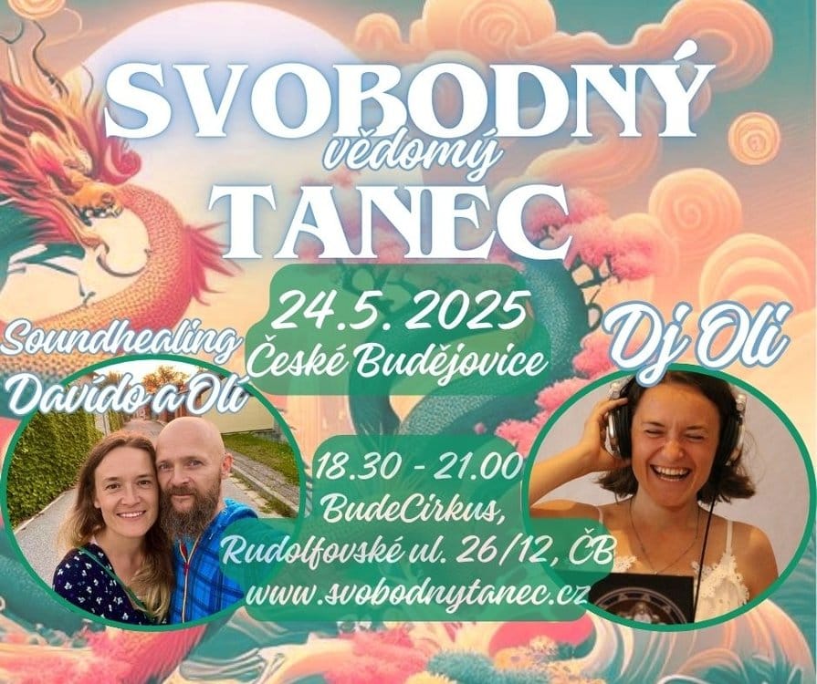 Taneční večer obohacený živými hudebními nástroji a zpěvem. Hudební sety Dj Oli jsou mozaikou elektronické taneční hudby a tribal prvky ze všech koutů světa. Na závěr večera vám zahrají životní partneři Olí a Davído na hudební nástroje s harmonickými tóny a zpěvem. Záměr večera je uvolnění a prožitek radosti ve sdíleném tanečním prostoru. Očista ducha a regenerace v taneční meditaci.