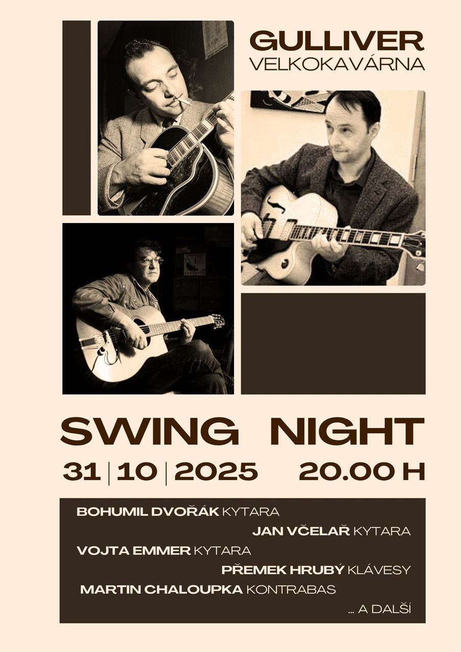 Dovolujeme si Vás pozvat na podzimní edici SWING NIGHT. Oblíbený tradiční večer v Gulliverově jazzové aréně, na kterém se sejdou výrazné osobnosti zlínské, kutnohorské a jihlavské hudební scény.