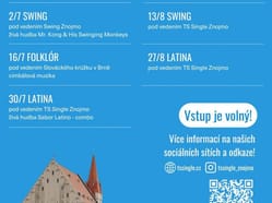 Přijďte si užít letní večer v centru Znojma v rytmu melodií ze zlaté éry swingu. Na tematickou tančírnu pod širým nebem u Enotéky znojemských vín zve od 19 hod. Taneční skupina Single. Na programu bude swing ve všech podobách i výuka základních kroků a zajímavých figur. Vstup je zdarma.