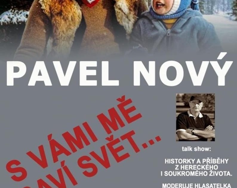 TALK SHOW Pavla Nového: Můžete se těšit na známého českého herce a jeho hosty. Zazní spousta historek nejen z natáčení jedné z nejznámějších českých komedii „S tebou mě baví svět“, ale i další historky a příběhy z hereckého i soukromého života. To vše pojato formou besedy doprovázené autorskými písničkami hudebního tria Sekáč & přátelé. Pořadem provází moderátorka a bývalá hlasatelka ČST paní Marie Tomsová.