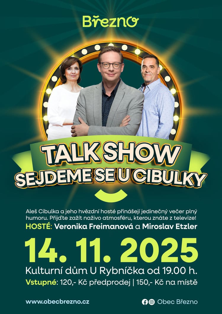 Srdečně vás zveme na jedinečný kulturní večer, který do Března přinese atmosféru oblíbeného televizního pořadu! V pátek 14. listopadu 2025 od 19:00 hodin se v Kulturním domě U Rybníčka uskuteční talk show „Sejdeme se u Cibulky“.