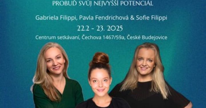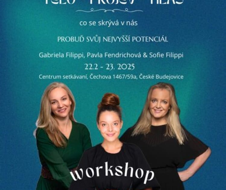 Toužíš po změně nebo chceš na sobě pracovat? Přitahuje tě tanec, zpěv, herectví, osobnostní rozvoj? Ukážeme Ti, jak se sebou co nejlépe zacházet. Pojďme společně tvořit Tvůj životní příběh tak, aby co nejvíc odpovídal Tvým představám. V radosti, lehkosti bytí, ve zpěvu, tanci, v meditaci. Skrze radostnou hru budeme objevovat naše nitro. Společná energie otevře prostor k velkým transformacím. Skrz náhled na sebe pojď sama transformovat svůj život. Ve dvoudenním workshopu nabídneme: Prožitkové metody v nalézání sebe sama – zapojení celého těla, hlasu, projevu. Osobní i týmová práce dotazování, naslouchání, všímavost. Praktická výuka formou interaktivních cvičení. Techniky, které jsou zaměřené na akci – zapojení celého těla a hlasu, tanec, zpěv, herectví a meditační praxe. Časově: Sobota 10:00 – 18:00 ( 7 vyučovacích hodin + 1 hodina na oběd), Neděle 10:00 – 17:00 ( s přestávkou na oběd) Ceny vstupenek: 5 444 Kč (cena na místě 5 999 Kč) Pro studenty (po předložení potvrzení o studiu na místě akce) 4 444 Kč. Možnost zakoupit 1+1 vstupenka za zvýhodněnou cenu 4 444 Kč / osoba. Chceme, aby byl workshop dostupný opravdu pro každého – proto nabízíme možnost platby na dvě splátky s odstupem jednoho měsíce. REZERVACE a platba přímo na: https://gabrielafilippi.cz/vstupenky-workshop-cb/ Pokud by při nákupu vašich vstupenek vznikl jakýkoliv problém, napište na vase@gabrielafilippi.cz. nebo na: napis@veronikamasinova.cz . Rády vám pomůžeme. Lektorky: GABRIELA FILIPPI, PAVLA FENDRICHOVÁ, SOFIE K. FILIPPI GABRIELA FILIPPI ,