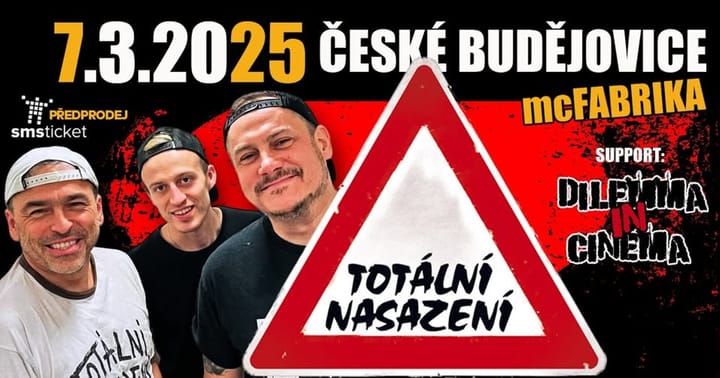 Koncert Totálního nasazení v Českých Budějovicích. Support: DILEMMA IN CINEMA / punk / Slaný