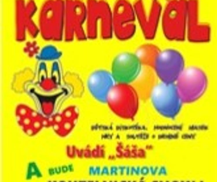 Tradiční nedělní dětský karneval pro děti s rodiči, s Šášou a Kouzelníkem Martinem a soutěžemi o drobné, většinou sladké ceny, hodnocením masek a malou dětskou diskotékou. Kapacita omezená, doporučujeme včasný příchod. Za děti zodpovídají po celý program rodiče nebo doprovod dítěte nikoli pořadatel.