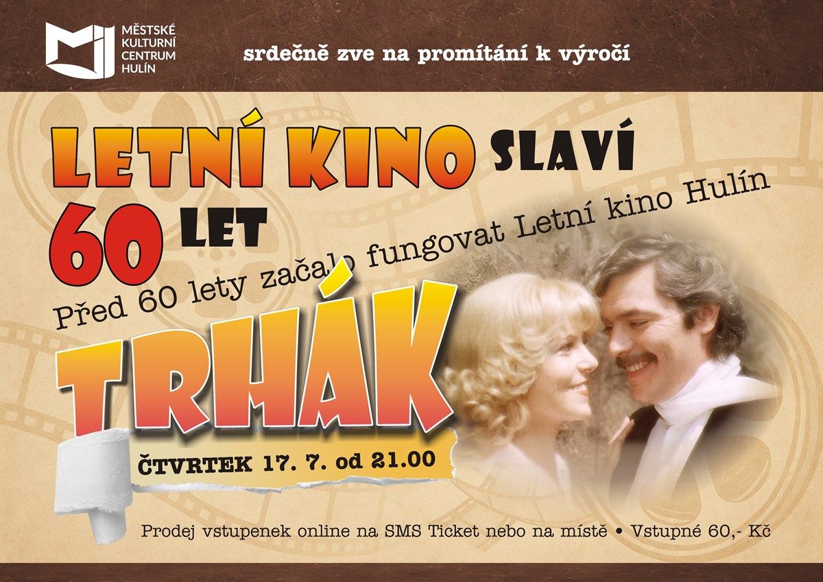 Ve čtvrtek 17. 7. 2025 se uskuteční speciální promítání k 60. výročí letního kina Hulína. Promítat se bude český film TRHÁK, který přesně před 60 lety zahájil provoz letního kina. Začíná se promítat od 21:00 (dle počasí). Cena vstupenky je 60 Kč.