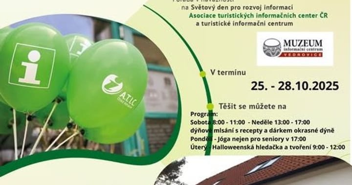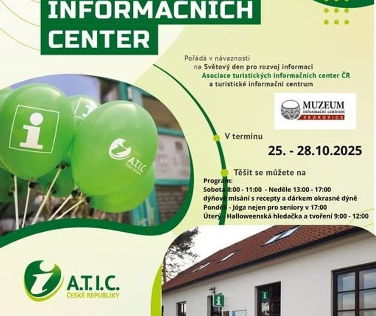 Asociace turistických informačních center ČR (ATIC) pořádá každoročně u příležitosti Světového dne pro rozvoj informací „Týden informačních center“. Zapojuje se do něj i Muzeum a informační centrum ve Vedrovicích, které ve dnech 25.–28. října nabídne mimo jiné Halloweenskou hledačku a tvoření, jógu pro seniory i dýňové mlsání s recepty.