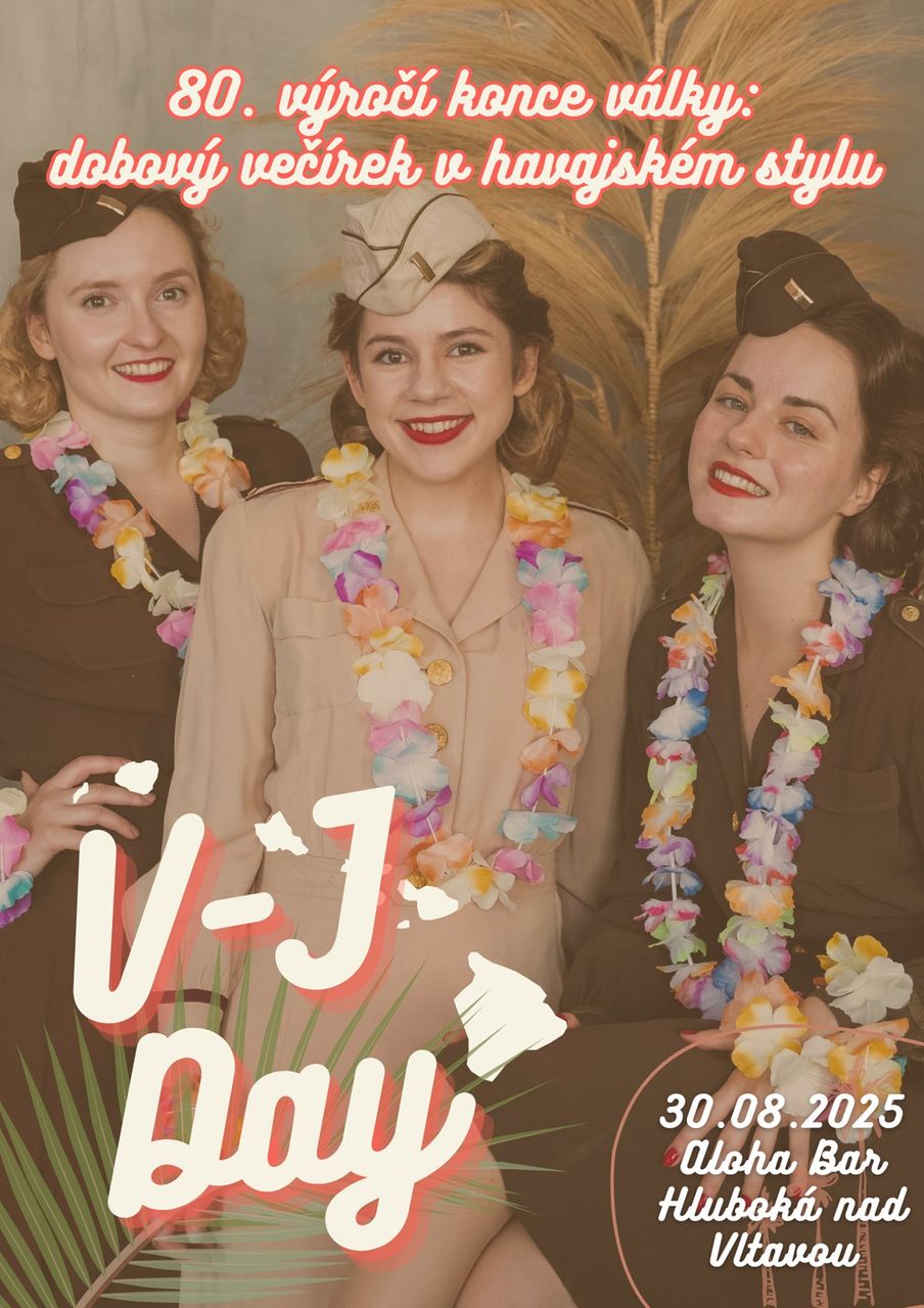 Přijďte s námi oslavit 80. výročí konce druhé světové války na jedinečné společenské akci ve stylu havajské párty! Vraťte se do 40. let a zažijte atmosféru V-J Day s hudbou, tancem a tropickým nádechem.