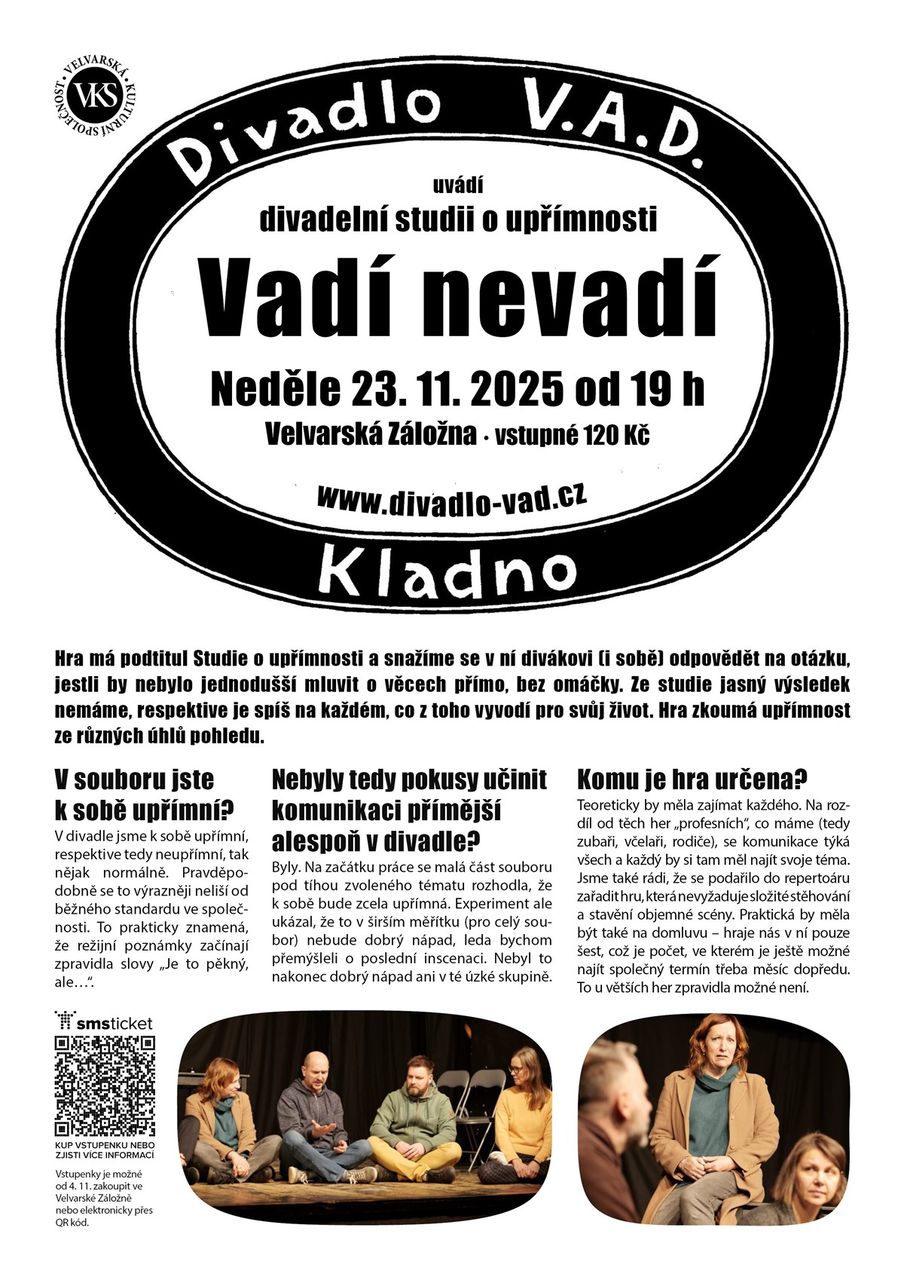 Kladenské amatérské divadlo V.A.D. vzniklo v roce 1998 a od začátku je divadlem autorským. V duchu vlastní poetiky se zaměřuje zejména na tvorbu komediální. Některé původní texty divadla V.A.D. převzaly do svého repertoáru i další divadla. Vedle hlavní autorské linie vznikají i vedlejší poetičtější projekty, z nichž některé jsou autorskými dramatizacemi známých literárních děl.