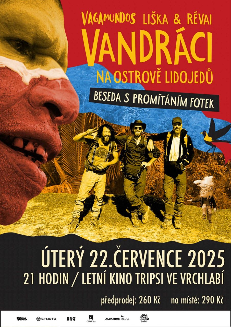 Pavel Liška a Jan Révai alias VANDRÁCI přijedou v úterý 22. července vyprávět, jak se měli na ostrově lidojedů. Beseda s promítáním proběhne pěkně pod širým nebem, jak se na letní měsíce sluší a patří, v letním kině Tripsi.