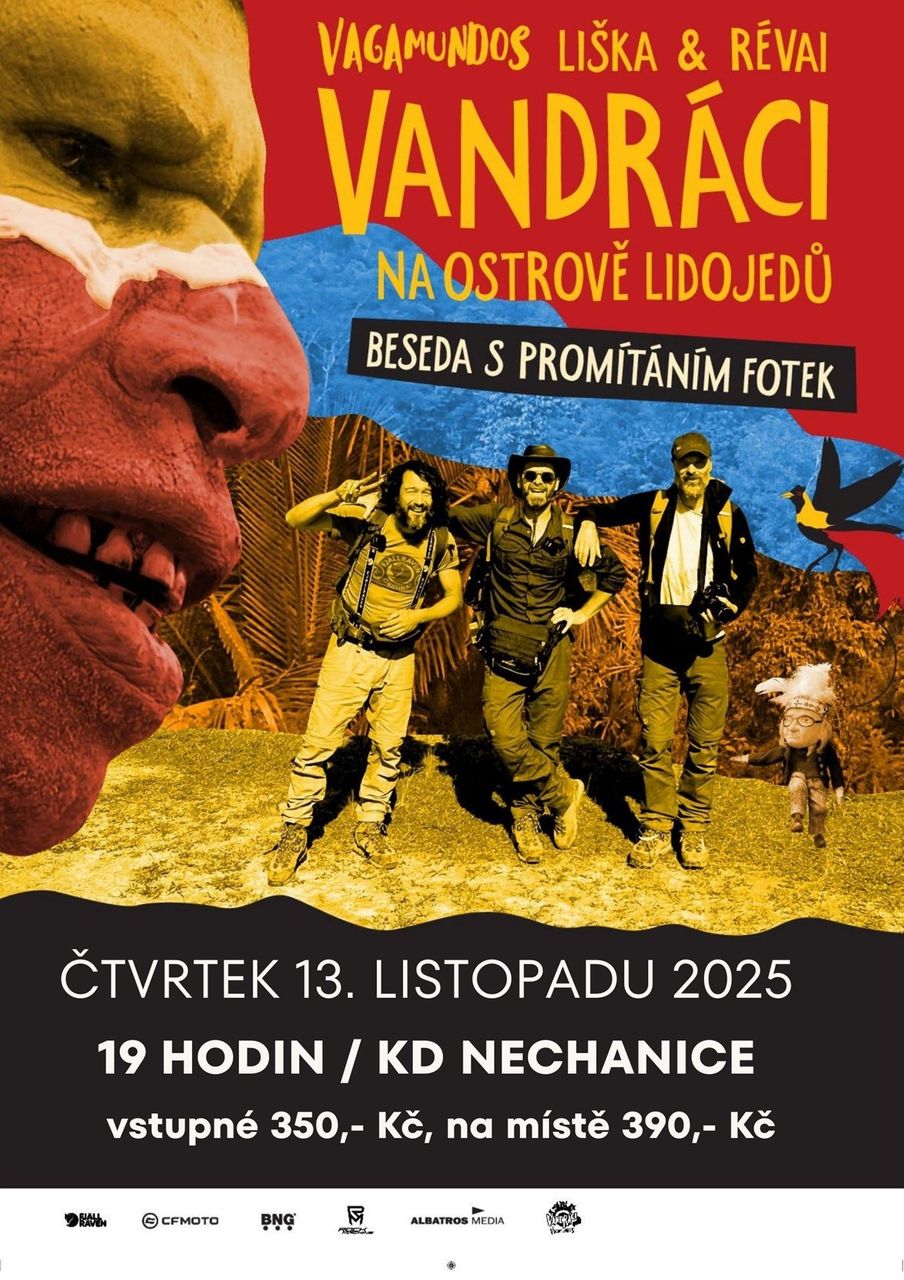 Po úspěšném vandráckém představení Střední Ameriky 2018, se kterým Jan Révai a Pavel Liška objeli celou naši republiku (přestože se skoro pokaždé pohádali o tom, jak to vlastně bylo, kdo chtěl pořád ujíždět, kdo byl protivnej, protože mu nedopřáli zajet si do civilizace pro kakao, kdo si nadělal do trenek a zakázal to vyprávět..), se nyní kluci vrací se zbrusu novým vyprávěním. Na velkém plátně doplní vyprávění promítáním fotek a videí z jejich druhé velké dobrodružné výpravy. Tentokrát se vrátili z druhého největšího ostrova světa, ostrova lidojedů, z tajemné Papuy Nové Guinei.