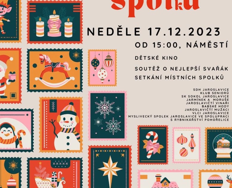 Obec Jaroslavice a místní spolky pořádají vánoční setkání na Náměstí, kde bude od 15 hod. připraveno pro děti venkovní pohádkové kino a pro dospělé soutěž O nejlepší svařák. Soutěžit přitom budou mezi sebou jednotlivé spolky z Jaroslavic. Přijďte ochutnat jejich svařené víno a pomozte vybrat to nejlepší z nich.