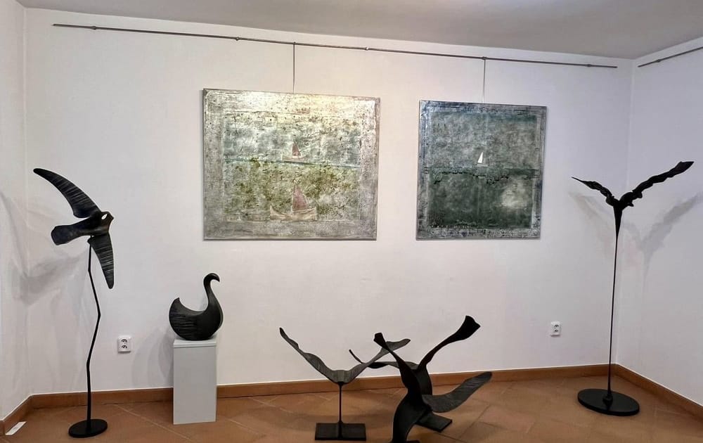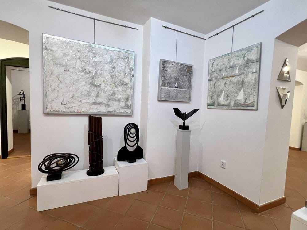 Kovové objekty Pavla Tasovského a Pavla Tasovského ml. Obrazy Prokopa Veselého.