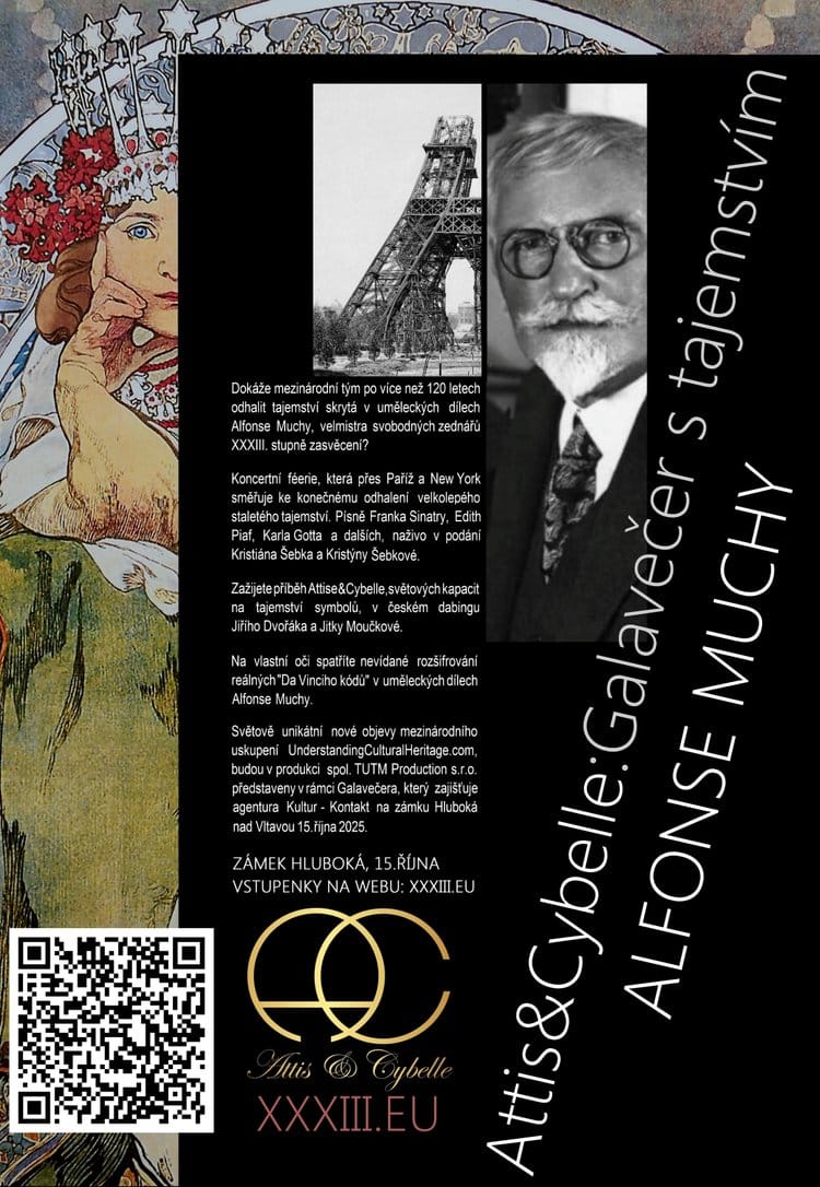 Na vlastní oči spatříte nevídané rozšifrování reálných „Da Vinciho kódů“ v uměleckých dílech Alfonse Muchy. Světově unikátní nové objevy mezinárodního uskupení UnderstandingCulturalHeritage.com, budou v produkci spol. TUTMProduction s.r.o. představeny v rámci Galavečera na zámku Hluboká nad Vltavou.